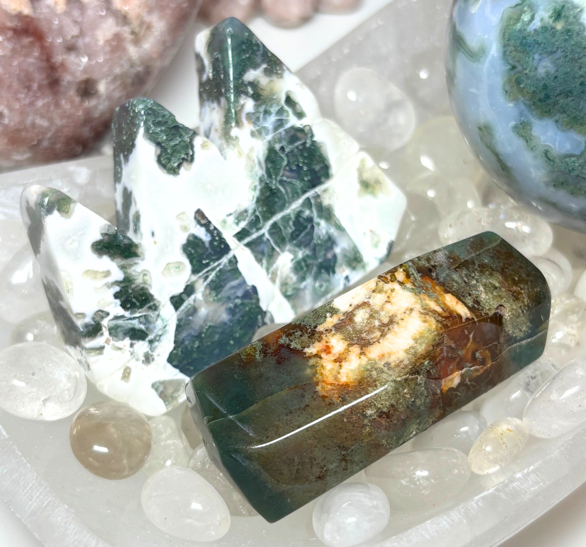 - Red Moss Agate freeform (Moss Agate and Carnelian mix)